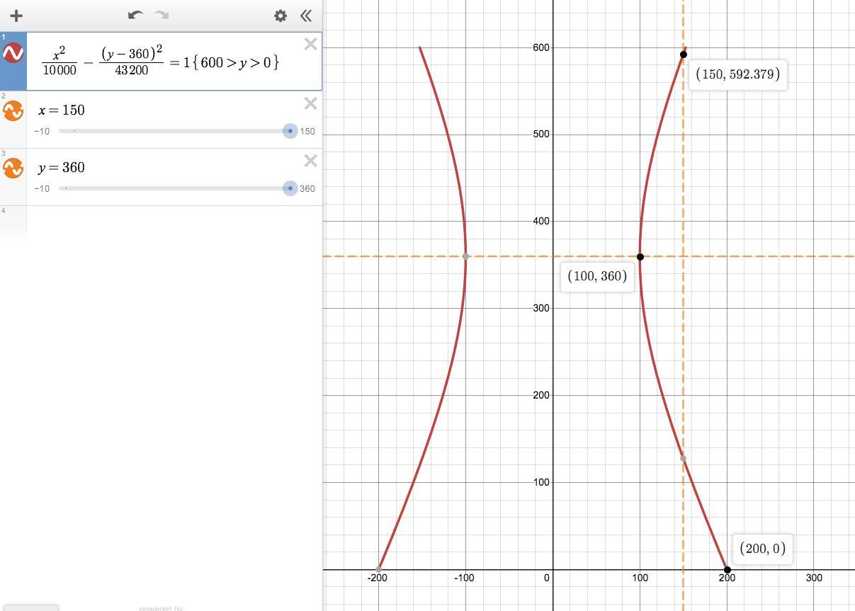 x^2/10000 - (y-360)^2/43200 = 1