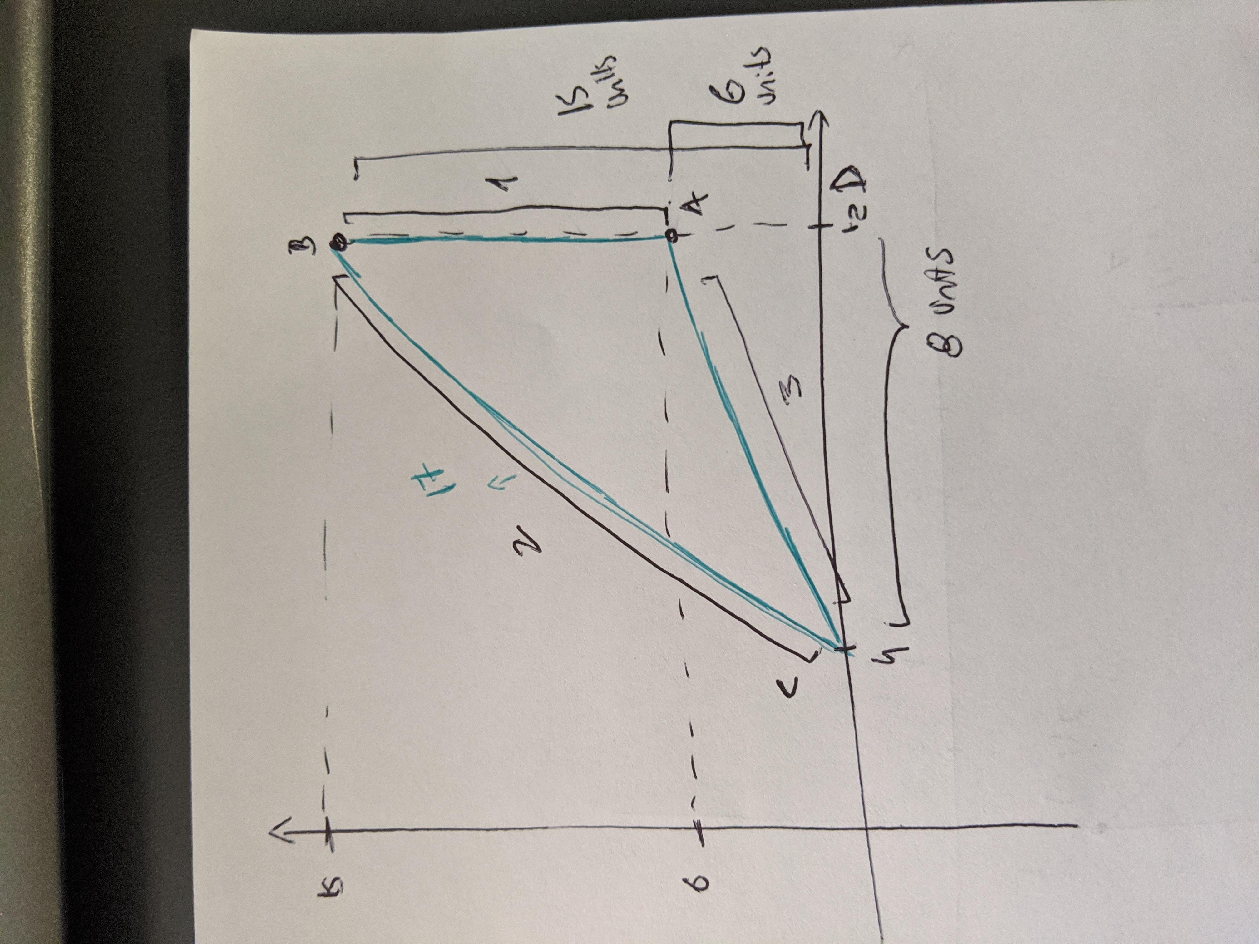 Finally, the 3rd section is the hypotenuse of the DAC triangle and we can use Pitagoras to solve it: