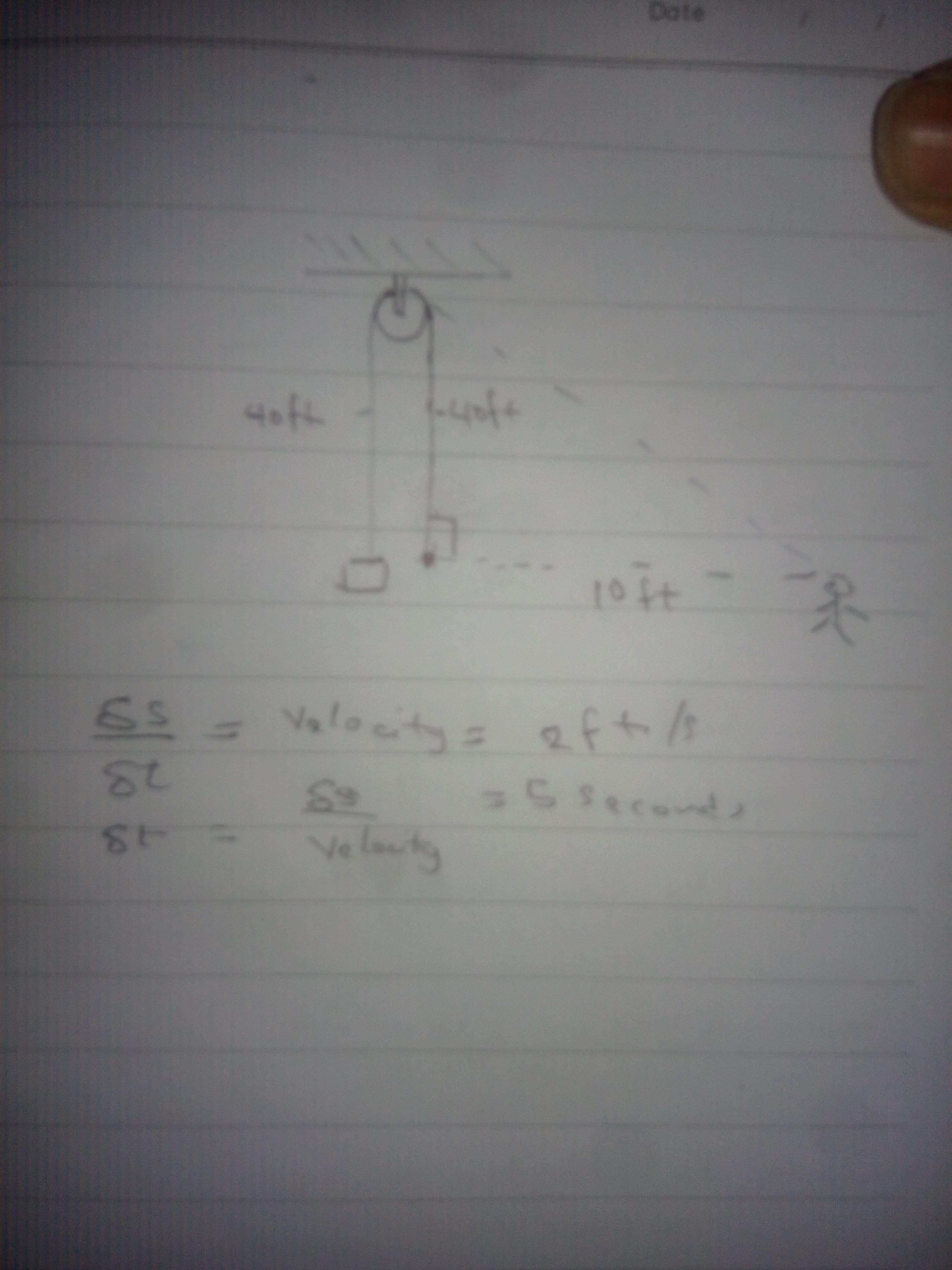 T = time taken the worker to move 10 ft = time taken for the load to move up = 5seconds