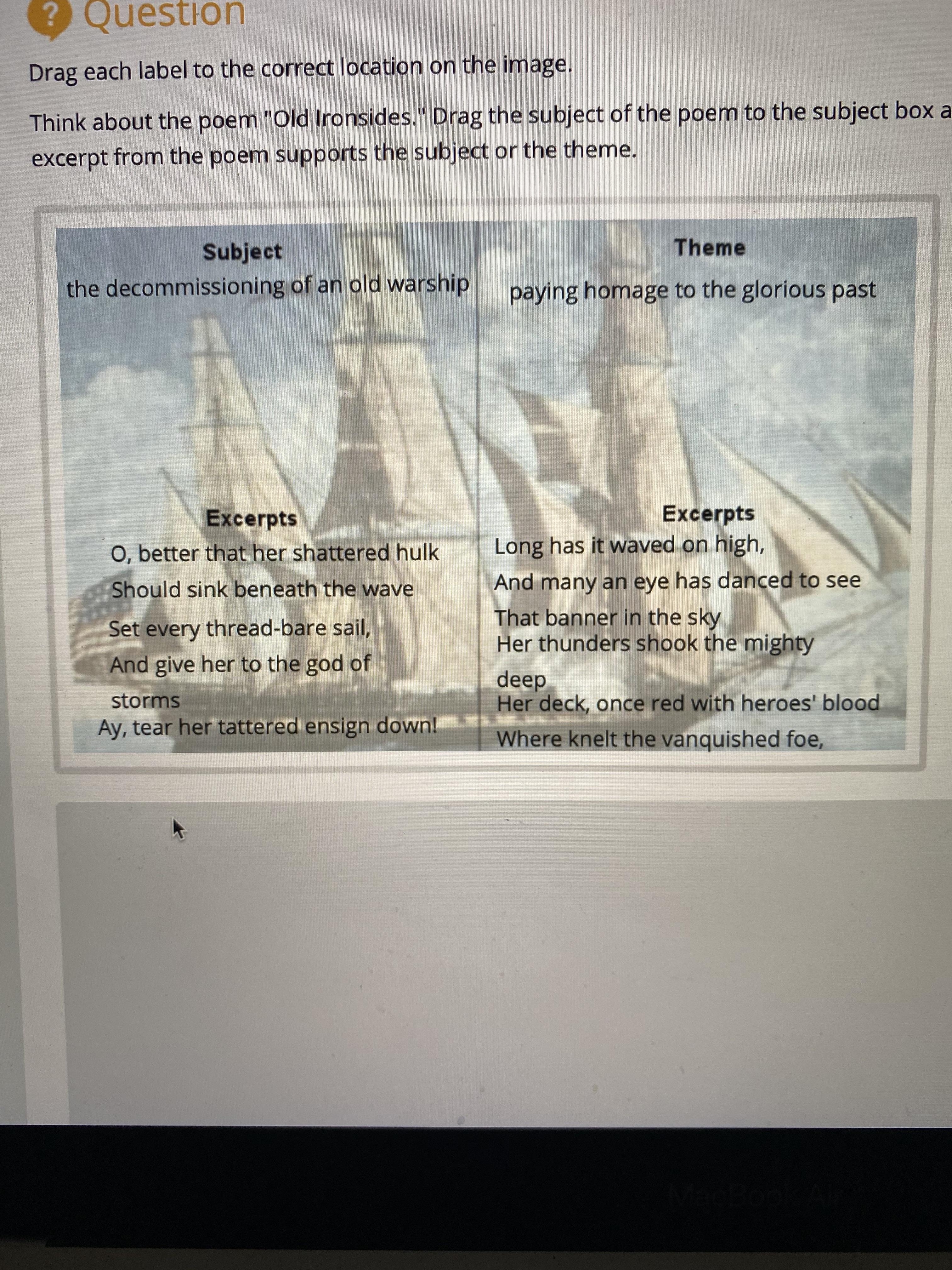 And give her to the god of storms, Ay, tear her tattered ensign down!, Her thunders shook the mighty deep, Long has it waved on high,