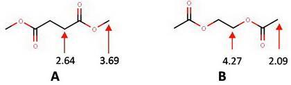 A is dimethyl succinate; B is ethylene glycol diacetate.